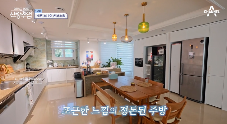 손정민 집이 정말 좋더라고요. 채광 가득 들어오는 넓은 거실에 포근한 느낌의 정돈된 주방! 조명 하나까지 골라서 교체했다고 해요. 인테리어에 진심인 듯! 주방에 타일도 하나하나 교체했다고 하는데 정작 요리는 한 번도 안 했대요ㅎㅎㅎ