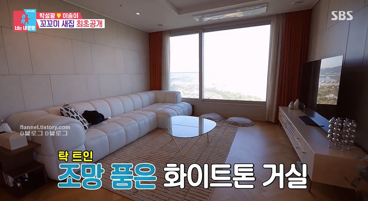 '동상이몽2' 박성광, 이솔이 부부가 새 집을 공개했어요. 한강 조망을 품은 깔끔한 인테리어가 돋보였는데요. 거실은 화이트톤으로, 주방은 그레이톤으로 꾸며졌네요. 햇살 쫙 들어오는 침실도 정말 예쁘더라고요.