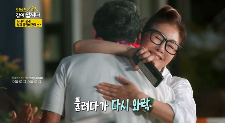 이경진이 종면 씨가 만찬을 차려주자 고마운 마음에 포옹했는데, 김청이 은근 질투하더라고요ㅋㅋㅋ 종면 씨도 "잘못했습니다" 사과하고ㅋㅋㅋ 자신도 종면 씨와 진하게는 아직 포옹 안해봤다고ㅋㅋㅋ 방송용인 건지, 실제 썸인 건지 궁금하네요.