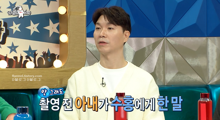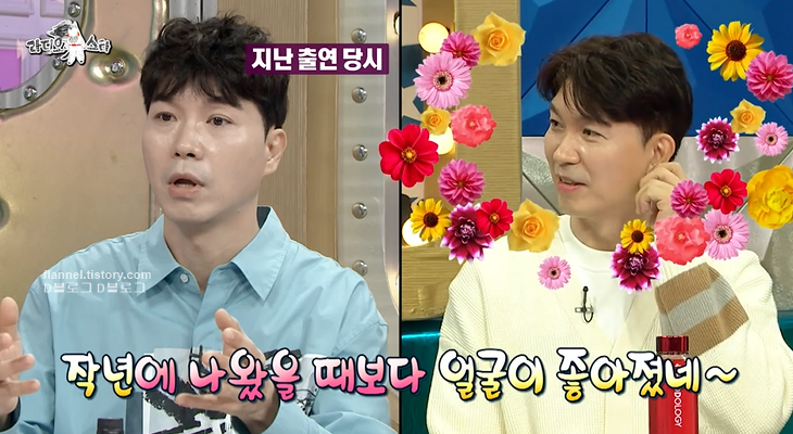 이날 박수홍 아내가 메이크업부터 의상까지 전부 골라줬대요. 확실히 작년에 출연했을 때보다 표정이 많이 좋아졌어요. 요즘 어떻게 지내냐는 말에 "아시잖아요 뉴스에"라며 너스레도 떨고. 괜히 녹화 분위기 다운될까 봐 더 애쓰는 것 같았어요. 앞으로 예능에 더 많이 나올 예정이래요. 고정 출연 중인 '동치미' '알짜왕' 등을 언급하며 하차 요구에도 끝까지 의리를 지켜줬다고 고마움을 전하기도 했어요.