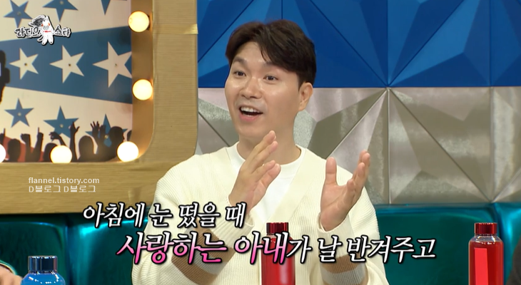 작년 7월 혼인신고 후 안정감이 든다는 박수홍. 이전에는 성공하는 게 정말 거창하고 대단한 건 줄 알았는데 이제야 느낀 진짜 성공은 "아침에 눈 떴을 때 일어나서 누군가가 날 반겨주고, 위를 올려다보면 침대 맡에서 다홍이가 늘 자요. 이런 게 성공인 줄 몰랐어요" 최근에 홈쇼핑도 자주 매진시킨대요. 그런데 불쌍해서 사주는 거 같다고ㅋㅋㅋ