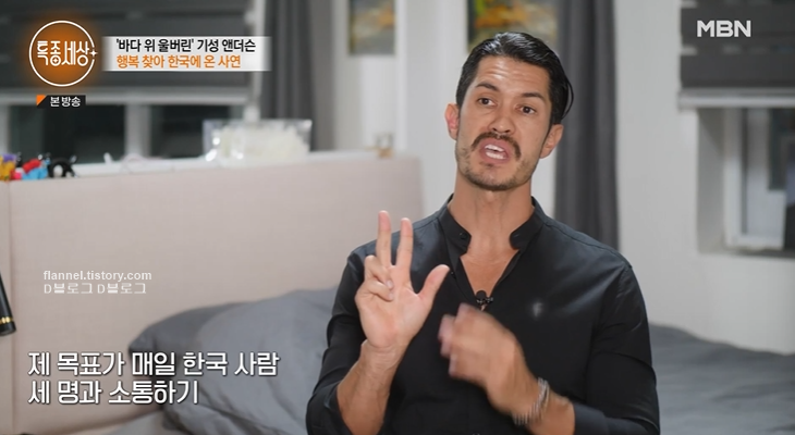 모든 욕심을 내려두고 행복을 찾아 한국에 왔다는 기성 앤더슨. 이후 그는 매일 목표로 한국 사람 3명과 소통하기를 잡았대요. 그래서 사람들이 보통 1년 안에 말할 것을 3개월만에 했대요. 그 3개월 동안 하루 5시간만 자고 사람들 만나는데 집중했다고 하네요.