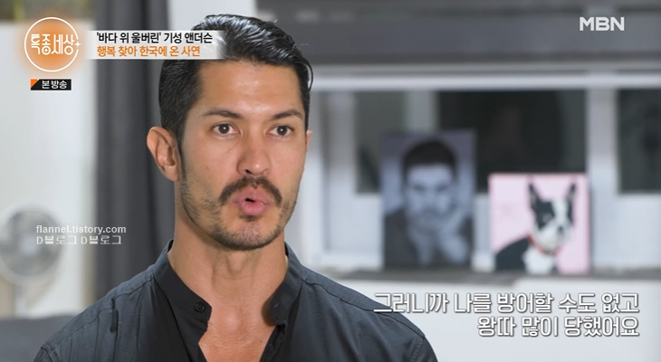 기성 앤더슨은 한국에 온 지 8년차 됐어요. 현재 세 마리 반려견과 함께 살고 있다고 하네요. 한국어가 너무 유창해서 놀랐어요! 마흔이 다 돼서야 한국에 오게 됐다는 기성 앤더슨. 그에게는 어떤 사연이 있는 걸까요?