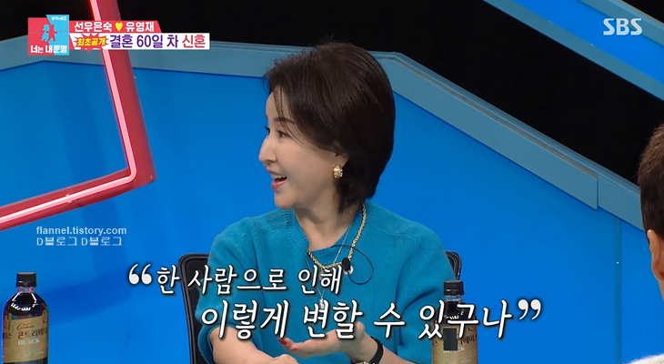 이날 선우은숙은 그동안 이영하와 결혼, 이혼하면서 언론의 뜨꺼운 관심을 받았던 터라 재혼이라는 건 생각도 안 해봤다고 말했어요. 그렇게 이혼 후 17년 간 마음을 문을 닫았었는데, '한 사람으로 인해 이렇게 변할 수 있구나'라는 걸 깨닫고 결혼에 대해 다시 한번 생각하게 됐대요.