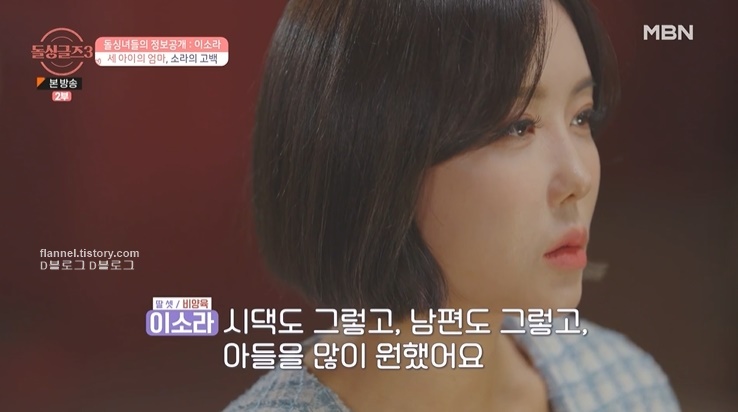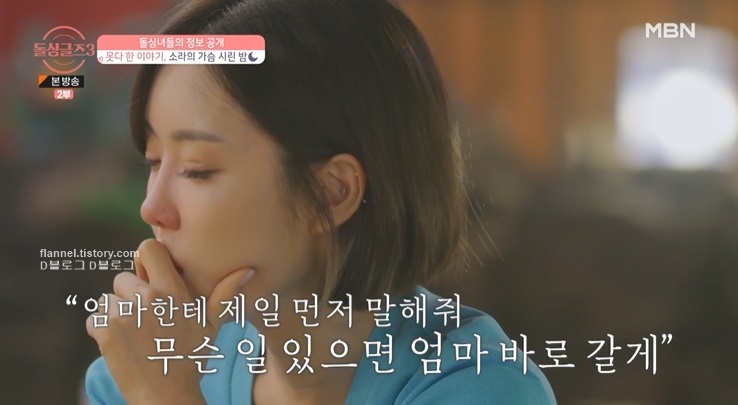 "전 아이들이 커요. 첫째가 14살이고요. 둘째가 11살, 셋째가 9살인데 애들이 다 초등학생, 중학생이고 첫째가 사춘기가 빨리 왔어요. 왜냐면 너무 어릴 때부터 엄마, 아빠의 싸움도 많이 봤고 이혼했다는 걸 알 나이에 이혼을 했기 때문에.. 막내가 4살 때 이혼을 했어요. 그래서 아이들의 입학식, 졸업식을 한 번도 가지도 보지도 못했어요. 그때 생각이 나서, 어제 많이 울었어요. 전남편 쪽에서 좋은 분을 만나서 저희 딸들도 예뻐해 주고 재혼하려 한다는 소식을 듣고 용기 내서 신청해서 나오게 됐어요"