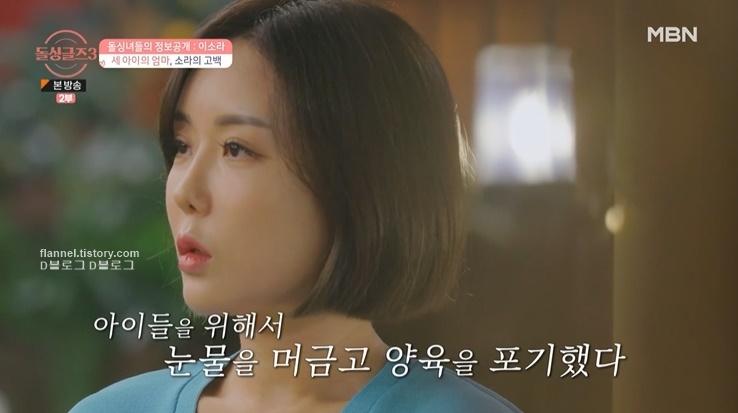 아이를 전남편에게 맡긴 이유에 대해서는, 아이가 셋인데 누구 하나만 데려오든 둘을 데려오든 자기 욕심이다 싶었대요. 아이들에게 못할 짓이다 싶었다고 하네요. 무엇보다 사회생활 경험이 전혀 없었어서 아이를 데려올 수 있는 상황도 아니었대요. 다행히 전남편 쪽이 아이를 양육할 수 있는 충분한 재력이 있기 때문에 믿고 협의 이혼했대요.