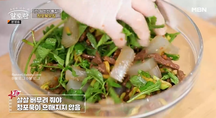 12. 살살 버무려야 청포묵이 으깨지지 않음