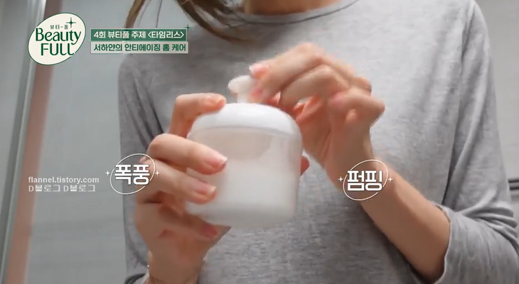 세안은 버블 용기를 이용한대요. 순한 클렌저를 용기에 담고 폭풍 펌핑한 다음 나온 거품 팩으로 아침을 시작한다고.