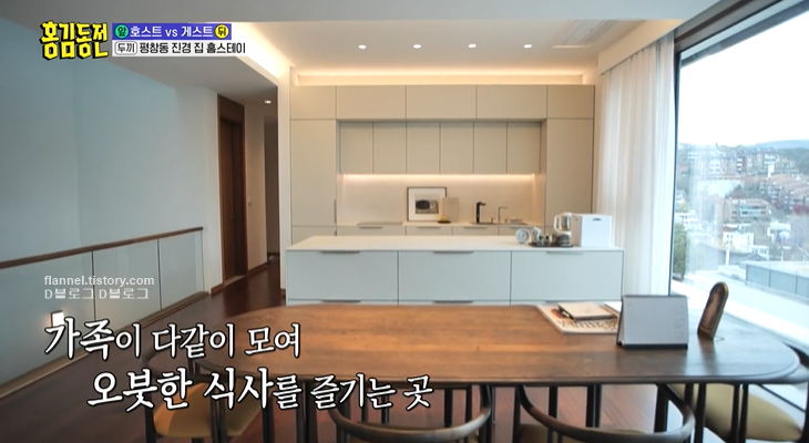 '홍김동전'을 통해 홍진경의 평창동 집이 공개됐어요. 3층 집은 공사만 6개월이 걸렸다고 앞서 밝힌 적이 있는데요. 특이한 게 현관문을 열고 들어오면 작은 주방이 먼저 보이네요.