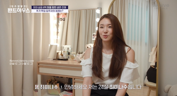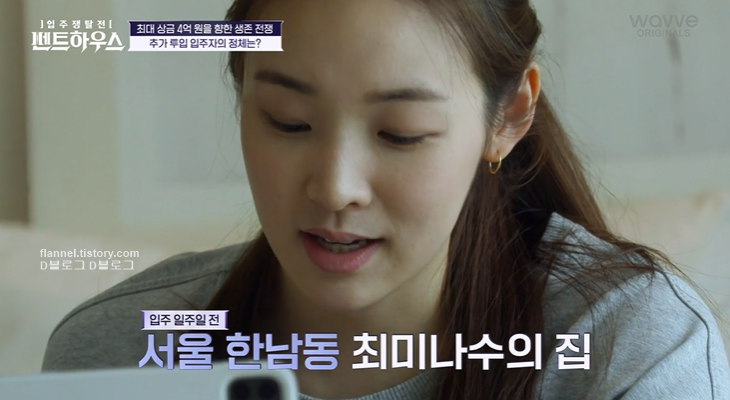 최미나수는 '펜트하우스' 5회부터 출연했어요. 참고로 예능 펜트하우스는 절대권력 펜트하우스를 차지하기 위한 극한의 생존경쟁을 말해요. 낸시랭, 서출구 등이 출연한 바 있어요. 최종 우승은 북한 남자 장면진으로 무려 4억 원의 상금을 거머쥐었어요.