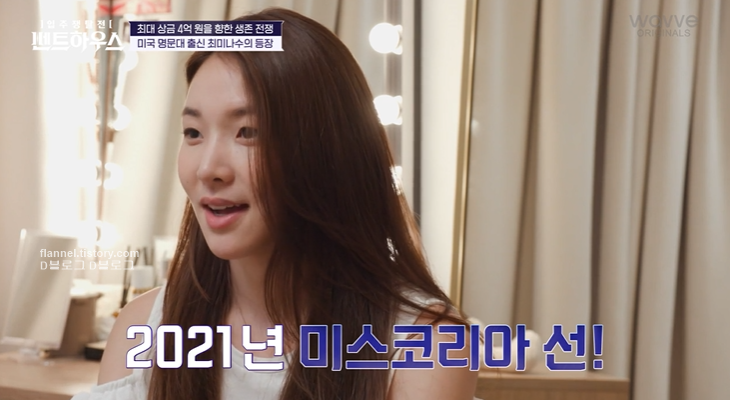 최미나수는 2021년 미스코리아 선이라고 밝혀 또 한 번 놀라움을 안겼어요. 정말 지덕체를 겸비한 사람이네요. 참고로 2021 미스코리아 진은 최서은이에요. 미스코리아에서 아쉽게 2등에 그쳐 이번엔 꼭 1등을 하고 싶었대요.