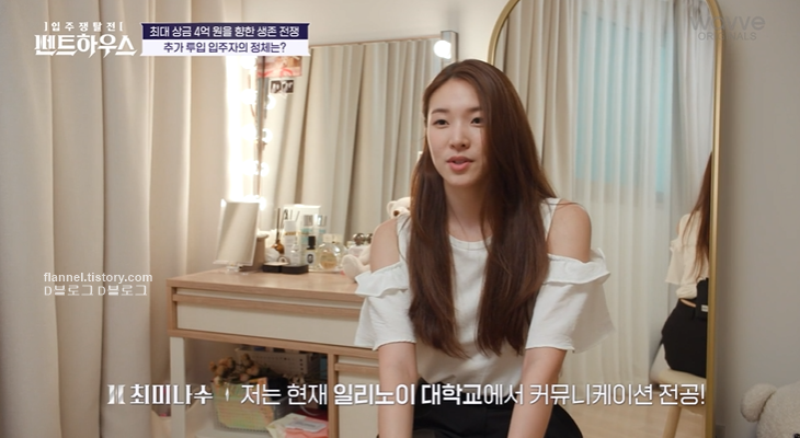 최미나수의 서울 한남동 집도 공개됐어요. 유창한 영어 실력 또한 공개됐죠. 알고 보니 일리노이 대학교 커뮤니케이션을 전공했다고 하네요. 당시 4학년으로 한 학기만 남은 상태라고 했어요. 생활비, 학비까지 다 합치면 1년에 1억 원이 들어간다고 말해 놀라움을 안겼어요.