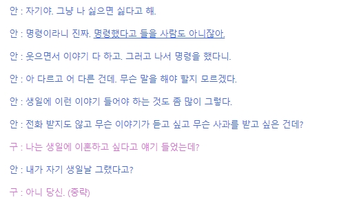 그리고 문제의 7월 1일 구혜선은 인스타그램을 통해 안재현에 대해 폭로하죠. 섹시하지 않은 젖**도 이때 나왔어요. 그때 문자를 디스패치가 포렌식 했는데 이날 안재현은 구혜선이 끓여준 생일국을 먹고 나갔대요. 오후 1시까지는 별다른 문제가 없었지만, 오후 2시에 안재현이 올린 깜짝 생일 파티 영상을 보고 폭발했죠.