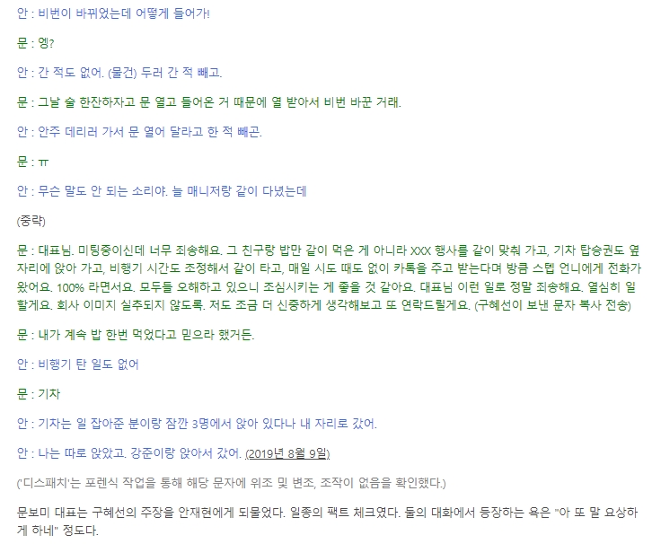 그리고 2019년 9월 디스패치는 구혜선, 안재현 문자 포렌식 분석 결과를 공개하기도 했죠. 디스패치에 따르면 두 사람의 균열은 2017년 두 사람이 용인으로 이사하면서 부터래요. 안재현은 '뷰티 인사이드' 드라마 때문에 서울에서 잠시 지냈죠. 용인 집에 소속사 이사를 데려왔다고 아파트 명의를 바꿔달라고 하기도 했네요.