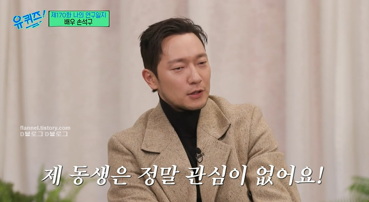 인기가 많아지고 동생 반응을 묻자 손석구는 "제 동생은 정말 관심이 없어요. 제가 뭐 하는 거에 대해서. 제가 나오는 드라마도 안 보는 줄 알았는데 보긴 보더라고요"