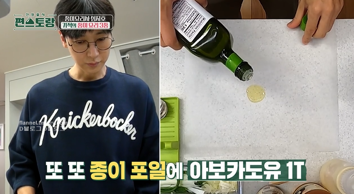1. 종이호일 위에 아보카도유 1T 넣고 잔멸치 올리기