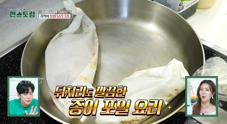 6. 포일에 싸서 팬에 올리기, 중불에 뚜껑 닫고 8분간 익히기