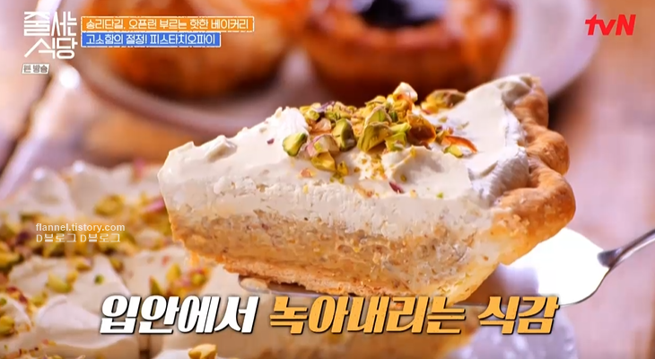 마무리는 달콤한 디저트로! 피스타치오 커스터드는 아이스크림 케이크 같대요. 입안에서 녹아버린다고.