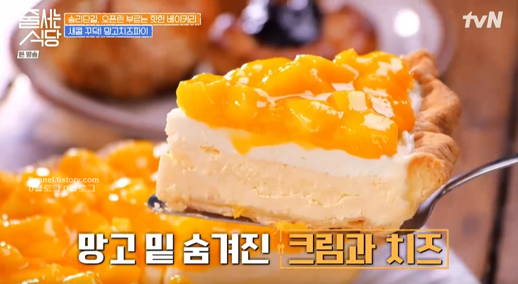 망고 치즈파이는 새콤한 맛이래요. 진한 치즈 그 자체라고. 망고 퓌레가 치즈의 느끼함을 확 잡아준대요.
