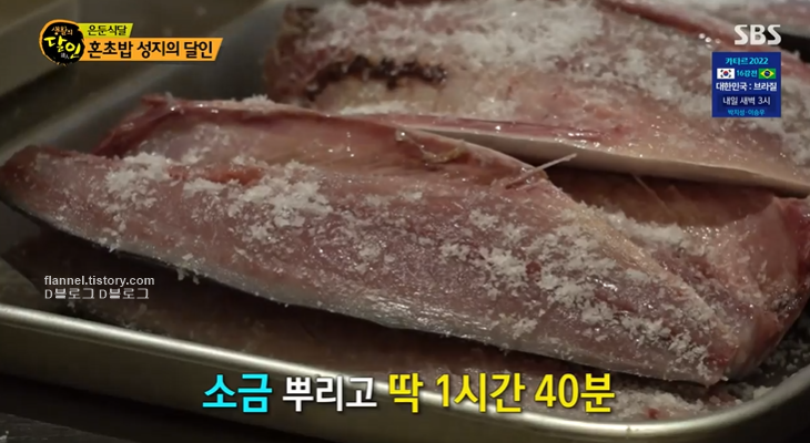 달인이 새벽 3시에 노량진 시장에서 생선 좋은 걸 다 골라 온대요. 좋은 생선이 없으면 문을 안 연다고 하네요. 요리에 남다른 철학이 있으신 듯!