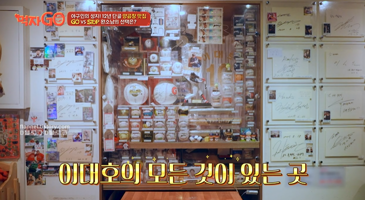 '먹자GO' 이대호의 12년 단골집이 공개됐어요. 국내 야구 톱스타들이 모두 거쳐갔을 정도로 맛을 보장받았다고 하는데요. 매장이 사인 인테리어로 꾸며졌더라고요. 이대호를 비롯해 이승엽, 박찬호, 류현진 등 전국 프로야구 선수들이 한 자리에 모였어요.