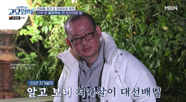 장인이 너무 무서운 거 아닌가 싶었는데, 알고 보니 장인도 20년 처가살이를 했었대요. 그래서 사위 마음을 누구보다 잘 안다고 이해해주네요. 속마음 터놓고 이야기하며 친해진 두 사람.