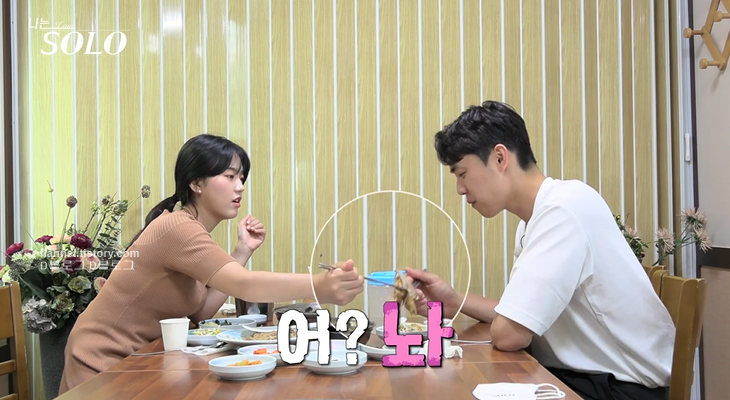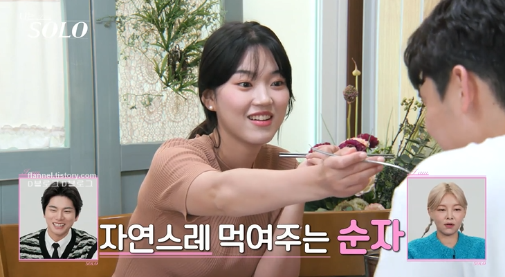그 소리 듣고 영철과 데이트 나와서 음식 먹여주는 순자. 그런데 계속 먹여주는 게 불편한지 영철은 입대신 젓가락으로 음식을 받으려 했어요. 그랬더니 그게 또 불편했던 순자.