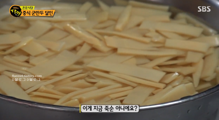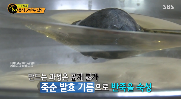 달인은 기름부터가 달라요. 특별한 향을 머금은 향유를 쓴다고 하는데요. 그 정체는 바로 죽순! 만드는 방법은 공개 불가이지만, 죽순 발효 기름으로 반죽을 숙성한대요. 그래서 달인의 군만두가 특별한 맛이었네요!