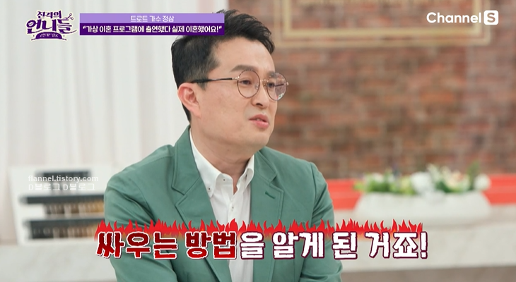 이전에는 아내와 티격태격하다가도 술 한 잔 먹으면 풀어지고 했는데, 해당 프로그램에 나가면서 싸우는 방법을 알게 됐대요. 자신이 옳다는 걸 증명해야 하니까 무조건 이기려고 상대에게 상처를 줬고, 이후 싸움에도 방송 촬영 당시 했던 비난들이 되풀이되면 결국 이혼으로 이어지게 되는 원인이 됐죠.