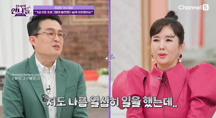 "'적당히'라는 말을 그때는 몰랐던 거 같아요. 욕심이 과했나 봐요. 부부 관련 프로그램이 계속 들어오니까 하다 하다 가상 법정 이혼 프로그램에 출연한 거죠"