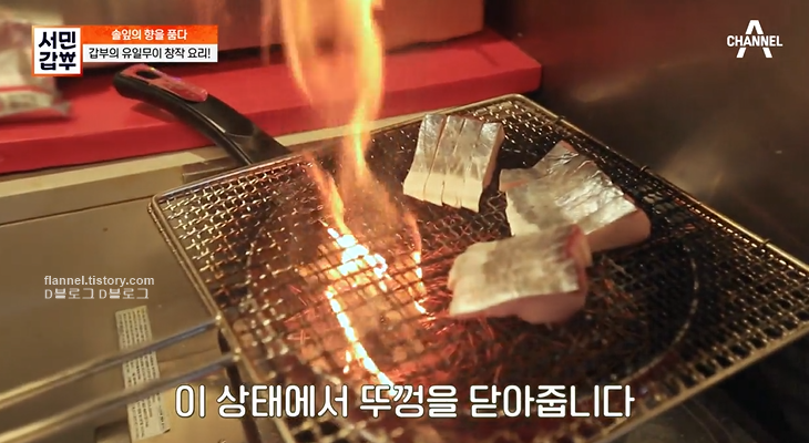 삼치를 회로 먹는 방법도 특색있어요. 솔잎에 토치로 불을 붙이고 석쇠를 올린 다음 삼치를 올리는 것. 이 상태에서 뚜껑을 닫아 불을 소화시키는 방법으로 훈연 향을 살짝 입혀요. 이렇게 하면 풍미가 더 높아진다는데, 이것 또한 이진환이 개발한 요리법이에요.