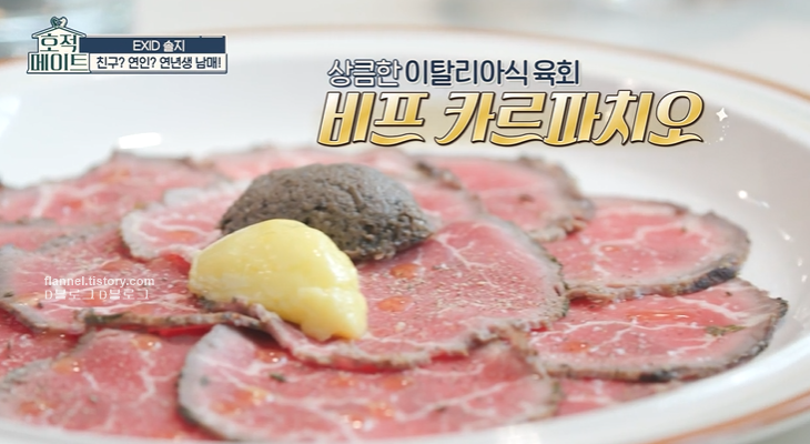 이날 솔지 오빠 식당도 나왔는데 음식이 너무 맛있게 보이더라고요. 오빠는 동생에게 화이트 라구와 비프 카르파치오를 추천했어요. 이 식당 대표 메뉴인 듯하네요. 음식을 동생 접시에 올려주는 친오빠. 현실 남매 맞나 싶은데 어렸을 때부터 항상 붙어있었대요. 세상에 둘밖에 없다고 배웠기 때문에 매우 돈독한 사이래요. 특히나 중학교 때 부모님이 일 때문에 떨어져 있었고 둘이 지낸 적이 있대요. 힘들고 외로웠던 시기를 같이 겪었기 때문에 더 애틋하다고.