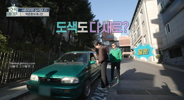 '호적메이드' god 박준형이 사촌 데니안과 셀프 세차장을 찾았어요. 특이한 게 세차장에 DJ부스는 물론 바비큐 공간까지 갖추고 있더라고요. 박준형 자동차도 특별한데 27년 된 올드카 프라이드예요. 차 가격은 230만 원인데 휠만 280만 원이 들어갔대요. 도색까지 다 해서 총 1천만 원이 들어갔다고.