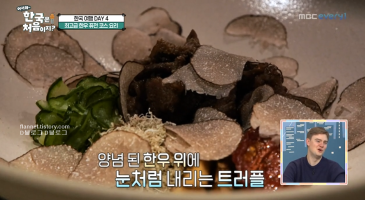 다음은 세계 3대 진미 중 하나인 트러플 등판! 불고기에 트러플을 더했네요. 음식값 엄청 비쌀 것 같다 싶었는데, 찾아보니 1인 15만 원이네요.