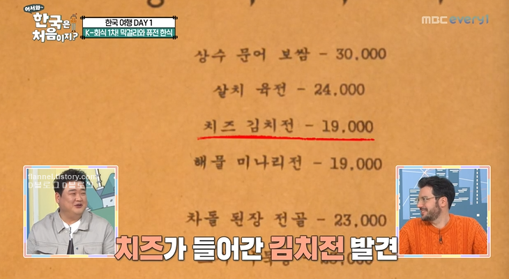 그리고 새로운 막걸리 등장. 한국이 사랑하는 김치전도 등장했는데 비주얼이 일반 김치전과 확연히 다르네요. 치즈김치전이래요. 다행히 셰프들 모두 김치전을 좋아하네요.