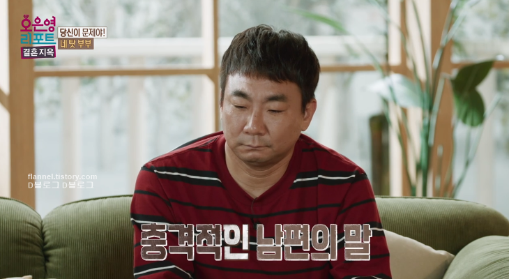 그런데 우는 아내에게 남편은 자신도 사랑받는 걸 못 느낀다며 "우리 부부는 남이라고 봐. 아이들 때문에 사는 거지. 실질적으로 우리는 남이야. 애들 셋 낳았기 때문에 사는 거야. 의무로 사는 거지 사랑은 없어" 응? ㅡㅡ