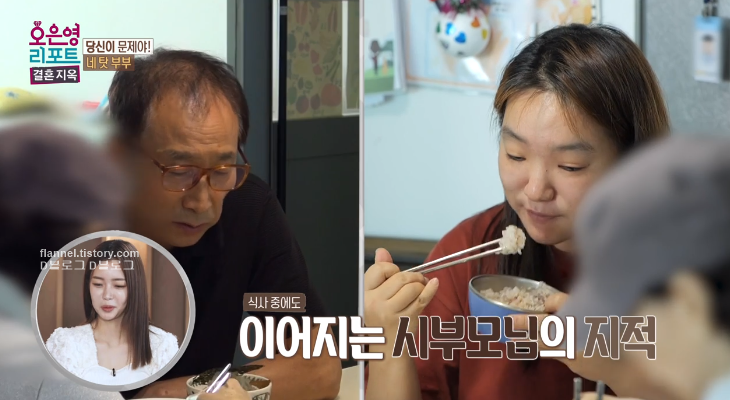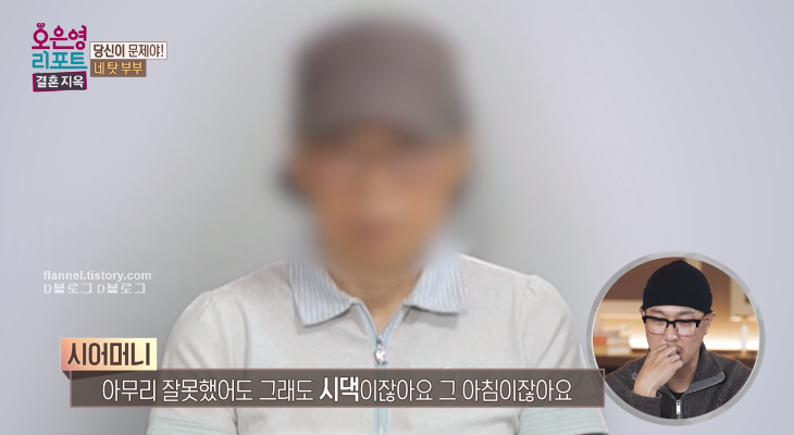 시아버지는 아내가 방송 신청했다고 하니까 대놓고 "어떻게 네가 이거를 신청할 수 있나 해서 이해가 안 가더라고" 여기에 시어머니는 "내가 말했잖아. 넌 기본이 안 돼 있다고" (와우.... 어떻게 대놓고 저런 말을...)