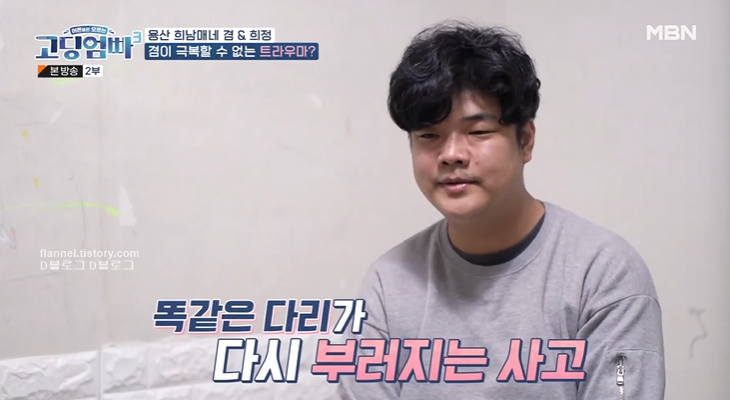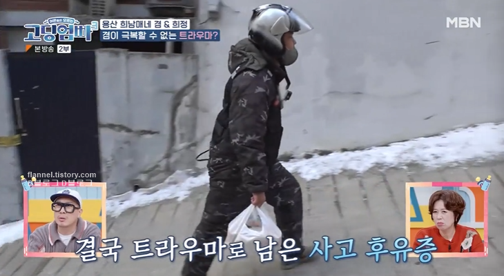 김겸은 원래 배달 대행 사업을 하고 있었대요. 하지만 기사님들과 틑러블이 있어 다 그만두게 됐고 결국 지난해 11월 사업을 정리했대요. 사업하면서 월 600~700만 원을 벌다가 지금은 기사일 하면서 절반 정도로 떨어졌고, 그러다 보니 금전적으로 좀 어려운 상태래요. 더군다나 눈이 오는 날 일을 하다가 넘어져서 발목 수술을 했대요. 3개월 재활 치료 하고 다시 일을 시작했는데, 다음날 또 눈 오는 날 일하다가 똑같은 다리가 부러졌대요. 그래서 트라우마 때문에 도로 아니면 골목은 걸어서 배달을 하더라고요.