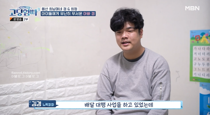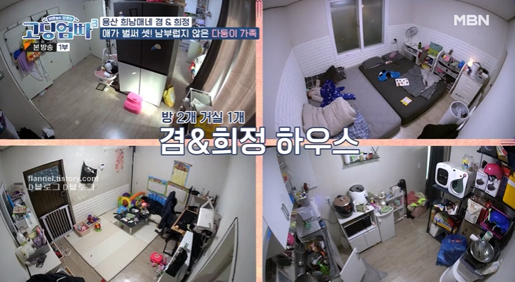희정, 겸은 반지하에서 살다가 신혼부부 LH 전세자금 대출을 받아 3년 전 이 집으로 이사를 왔대요. 김겸 직업은 배달 일을 하고 있어요. 12시간씩 일을 하다 보니까 집에 와서는 애들도 안 보고 핸드폰만 보더라고요. 그런데 집이 좁아서 부끄럽다는 첫째 환희 ㅜㅜㅜ 7살인데도 친구집 거실은 되게 넓다며 비교를 하네요 ㅜㅜ 아들 푸념에 속상한 엄마, 아빠 ㅜㅜ
