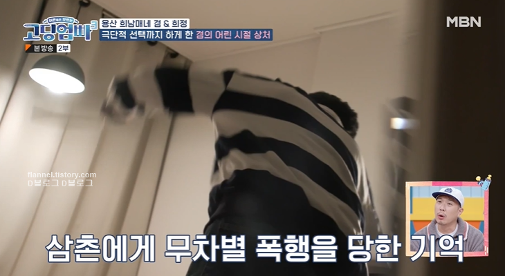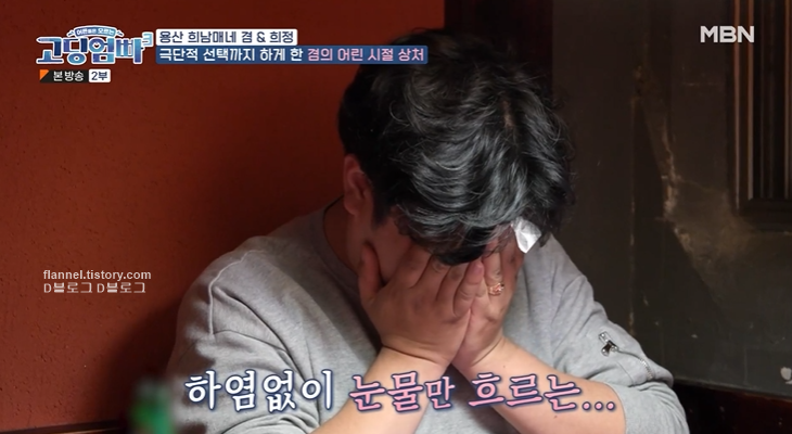 충격적인 건 김겸이 집에 있는 혈압약을 한꺼번에 많이 먹고 극단적 시도까지 했었대요. 손목도 여러 번 시도했다고.. 친구가 이유를 묻자 어렸을 때 자랐던 가정환경 때문이라고 하네요. 할머니, 할아버지 밑에서 자랐는데 같이 살았던 삼촌에게 많이 맞았대요. 집에 돌아오면 불 꺼놓고 회초리부터 시작해서 무차별 폭행을 당했대요. 피할 때마다 더 단단한 걸로 맞았다고.. 7살 때부터 중학생 때까지 그런 일이 쭉 있었다고 하니 정말 힘들었겠어요.. 고등학교 때는 친형에게도 맞았다고 하는데 ㅜㅜㅜㅜㅜ 정신적 치료를 받고 싶은데 금전적으로 어려워서 아내에게 말하기도 힘들대요..