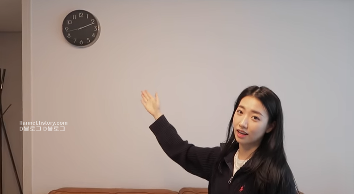 소파가 가장 비싸대요. TV장이나 탁자는 오늘의집에서 구입했고 러그, 커튼은 이케아에서 샀대요. 시계는 모던하우스 거.