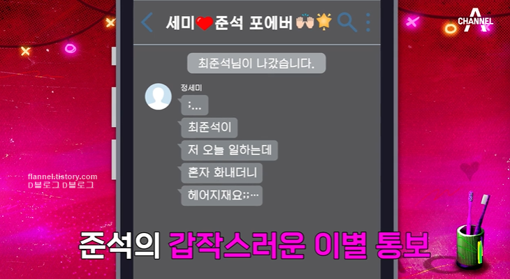 결국 3개월 단기 동거를 결정한 두 사람. 하지만 계약서 사인도 했는데 최준석은 정세미에게 헤어지자고 하고 제작진 단체톡방도 나가버렸어요. 이후에도 연락이 두절된 준석. 이 무슨 일..