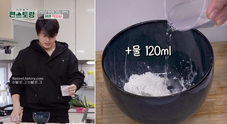 7. 밀가루 3T, 소금 한 꼬집, 물 120ml 섞어 밀가루물 준비