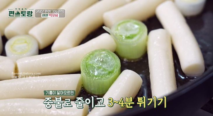 6. 기름이 달아오르면 중불로 줄이고 3~4분 튀기기