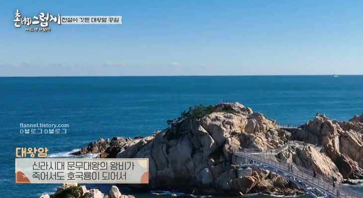 우리나라 동남단에서 가장 뾰족하게 나온 부분의 끝 지점에 해당하는 바위 공원. 신라시대 문무대왕의 왕비가 죽어서도 호국룡이 되어서 나라를 지키겠다 하여 바위섬 아래 묻혔다는 전설이 있는 곳. 난간 일체형 보도 현수교 방식의 출렁다리도 있음. 아파트 21층 높이라고.