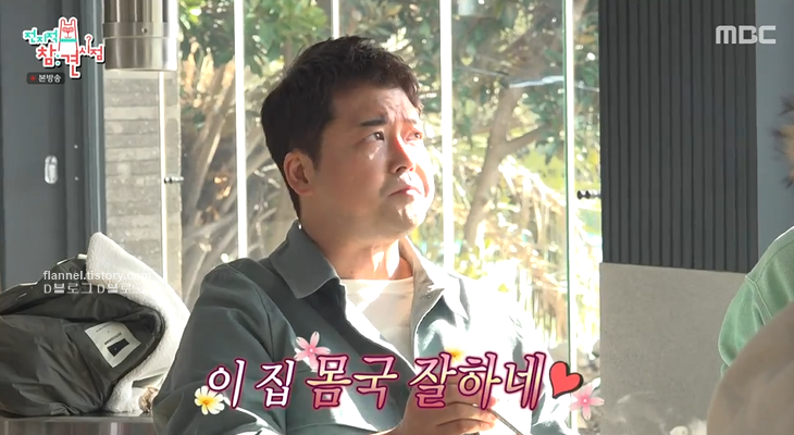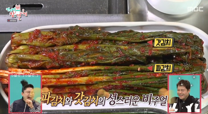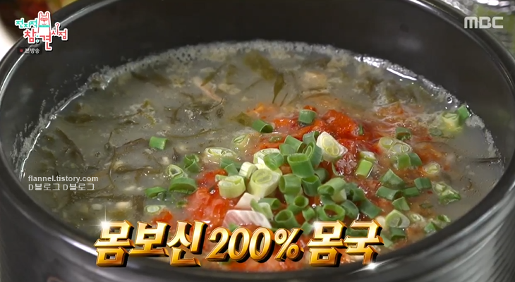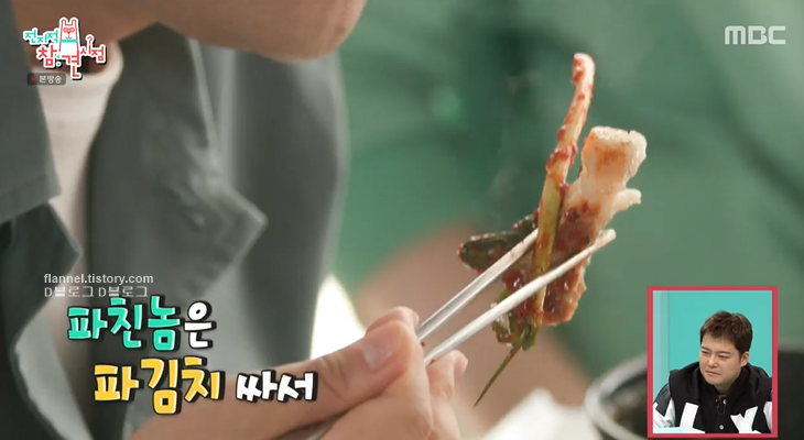 사이드 메뉴로 전현무가 좋아하는 파김치, 갓김치 등장. 모자반에 흑돼지 뼈 육수로 끓어낸 몸국도 등장. 서비스 메뉴가 너무 좋네요. 네 명 다 몸국 맛에 반했는데 몸국 먹으러 고깃집 가야 할 듯ㅋㅋㅋ