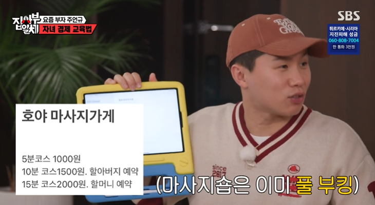 그리고 부자들이 공통적으로 버린 3가지가 있다고 하는데요. 바로 '돈에 대한 잘못된 개념 버리기'. 돈은 단순히 소비의 목적이 아니라는 것. 돈은 투자, 저축, 소비, 기부하는 거예요. 실제로 주언규는 8살 아들에게 집 안에 상점을 만들어 경제 시스템을 만들었대요. 아빠가 호야 방을 빌려 1박 하면 3천 원을 주는 식. 집 안에서 카페, 마사지가게도 운영한대요. 용돈기입장 쓰는 것도 필수.