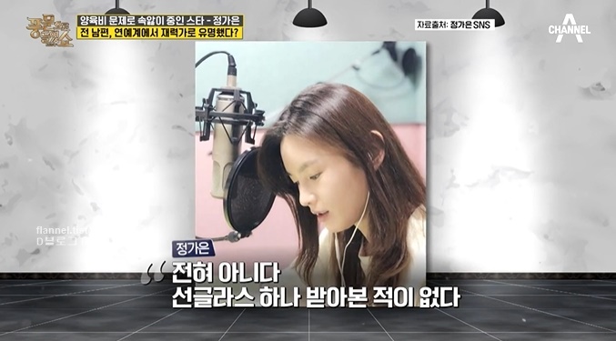 이후 딸을 출산하고 행복하던 그때 전 남편의 정체가 수면 위로 드러났어요. 사기 행각이 속속 밝혀진 것. 그렇게 두 사람은 결혼 2년 만에 이혼을 결정하게 됐죠. 이혼 후에도 정가은은 양육비 한 번 받아본 적 없다고 해요. 결혼 생활 중에도 생활비 한 번 못 받았다고 하네요.