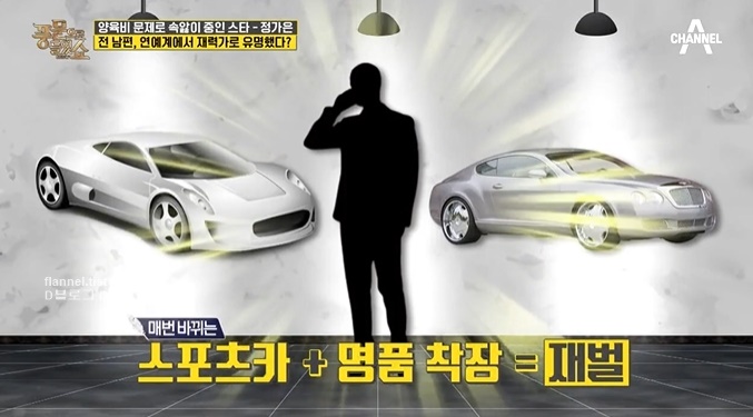 결혼 전 정가은 남편은 상당한 재력가라는 소문이 많이 퍼졌어요. 정가은에게 수억짜리 외제차를 사줬다는 이야기도 떠돌았죠. 하지만 한 방송에서 정가은은 선글라스 하나 받아본 적이 없다고 부인했어요. 기자들 사이에선 돈벌이는 모르겠지만 씀씀이가 크기로 유명했다고 하네요. 한 리포터가 전남편의 공업사를 방문했을 당시 고가의 유명 스포츠카들이 즐비했었대요. 유명인들에게 무료로 자동차를 수리해 주고 튜닝도 해주며 인맥을 넓혀갔대요. 대부분의 돈을 유흥비와 명품 소비에 썼다고.