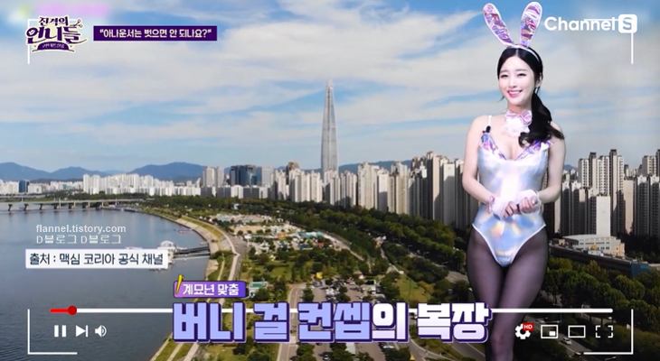 YTN에서는 깔끔한 아나운서로 등장했어요. 그런데 맥심코리아 유튜브에서는 버니 걸 기상캐스터로 등장.